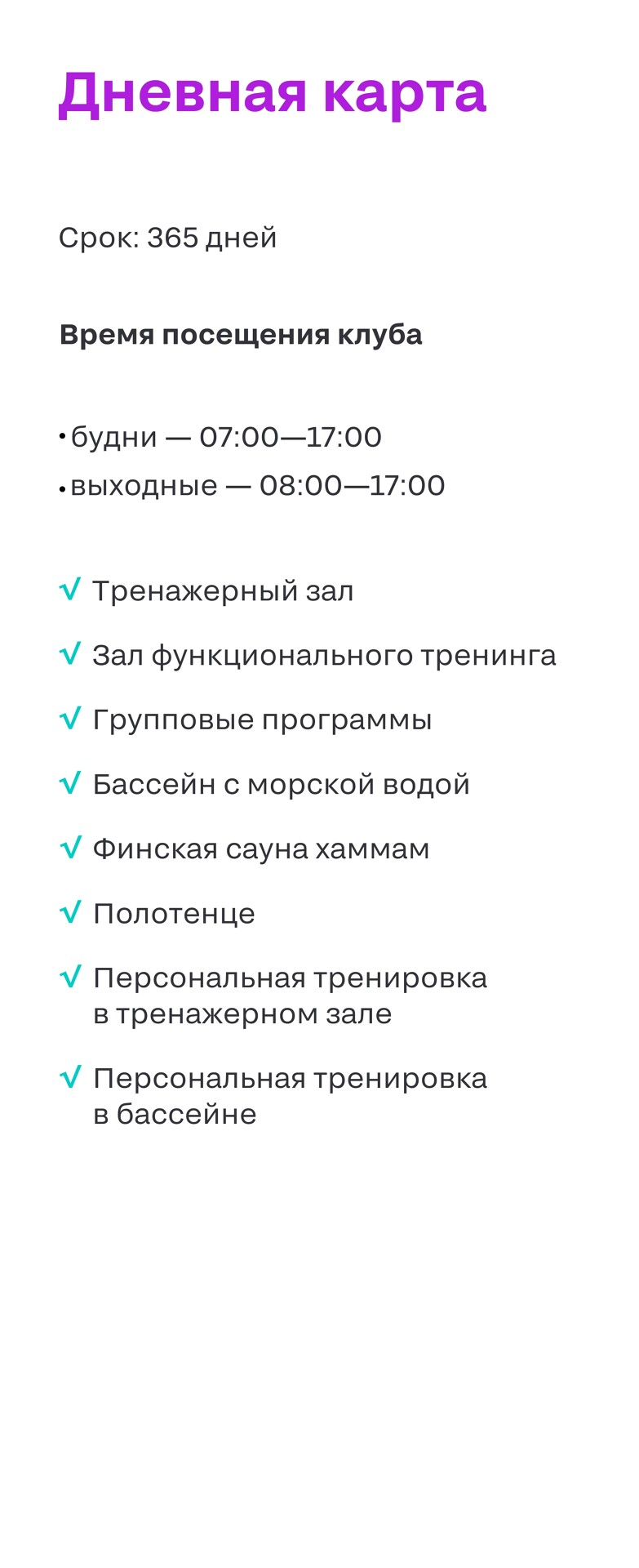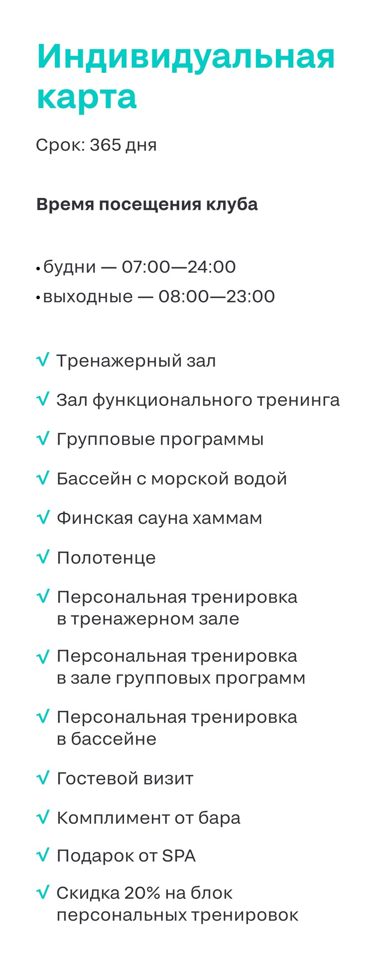 • профессиональное сопровождение в любой из зон (тренажерный зал, студии групповых программ, бассейн, детский фитнес)